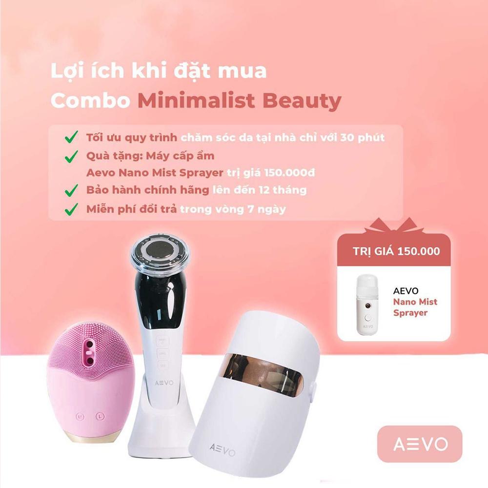 - Trẻ hóa làn da với mặt nạ AEVO Mask Therapy: Với cơ chế cảm ứng cùng liệu pháp làm đẹp bằng ánh sáng, mặt nạ AEVO Mask Therapy sẽ đem đến cho chị em một liệu trình làm đẹp da chuẩn spa ngay tại nhà chỉ trong 10 phút. Lợi ích khi đặt mua combo AEVO MINIMALIST BEAUTY