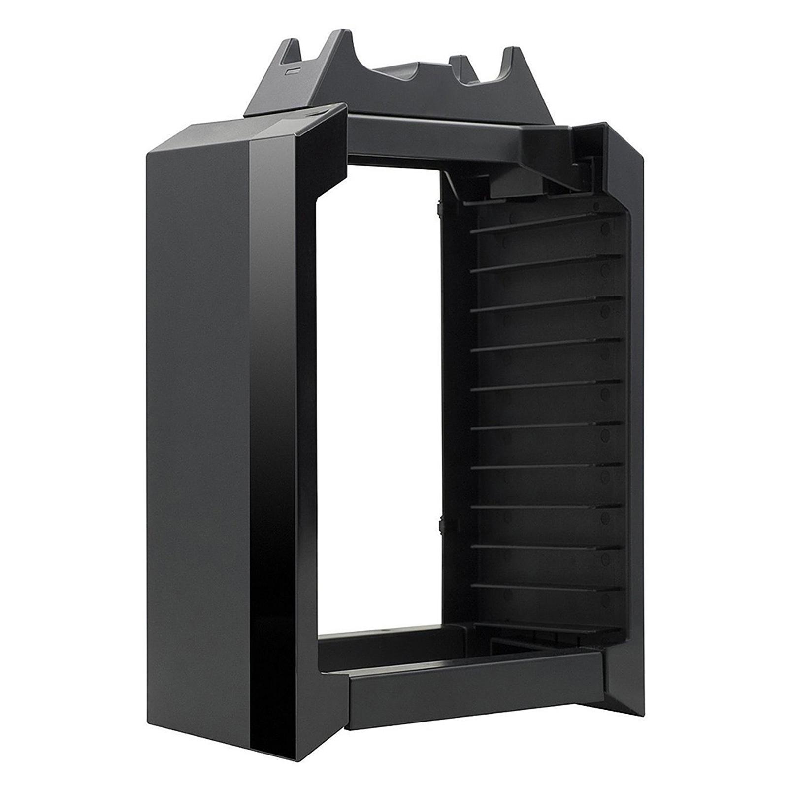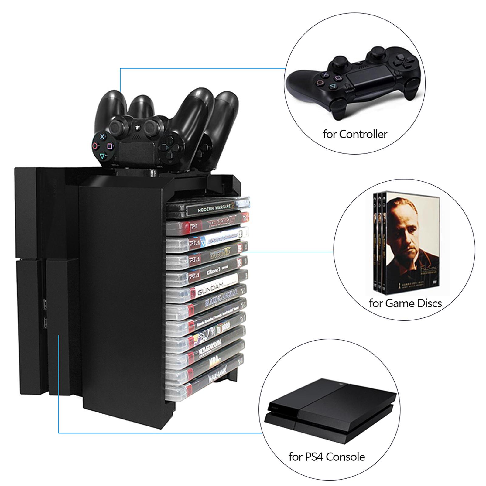 Multi-functional storage stand kit is designed for game fans. It can effectively reduce operation temperature of for PS4 console and at the same time it can charge for two PS4 controllers. The storage stand kit can hold two for PS4 controllers on the top, frequently games disks and for PS4 console on the stand which avoid forgetting them in a corner to make your game places more organized to some extent. Features: The storage stand kit can hold two for PS4 controllers on the top, up to 12 game discs and for PS4 console on the stand which avoid forgetting them in a corner to make your game places more organized to some extent. It can effectively reduce operation temperature of for PS4 console to reduce power loss, improving main engine performance. With dual charging dock on the top of stand kit, two for PS4 controllers can be charged simultaneously. Charging dock can be taken down for portable use if taking outing. The storage is composed of five pieces of plastic parts with different shapes, which is easy to assemble an dismantle. Specification: Color: Black Item Szie: Approx. 32 19.7 11.8cm / 12.60 7.76 4.65in Item Weight: Approx. 568g / 20.03oz Package Size: Approx. 31.2 14 8.8cm / 12.28 5.51 3.46in Package Weight: Approx. 686g / 24.24oz Package List: 1 Multi-functional Storage Stand Kit 1 Controller Charging Dock 1 * Micro USB Cable