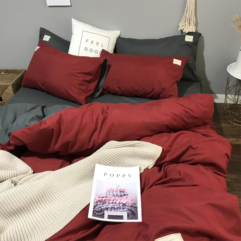 ✨Bộ Chăn Ga Gối Cotton Tici LIDACO - Đỏ Đô Ga Xám