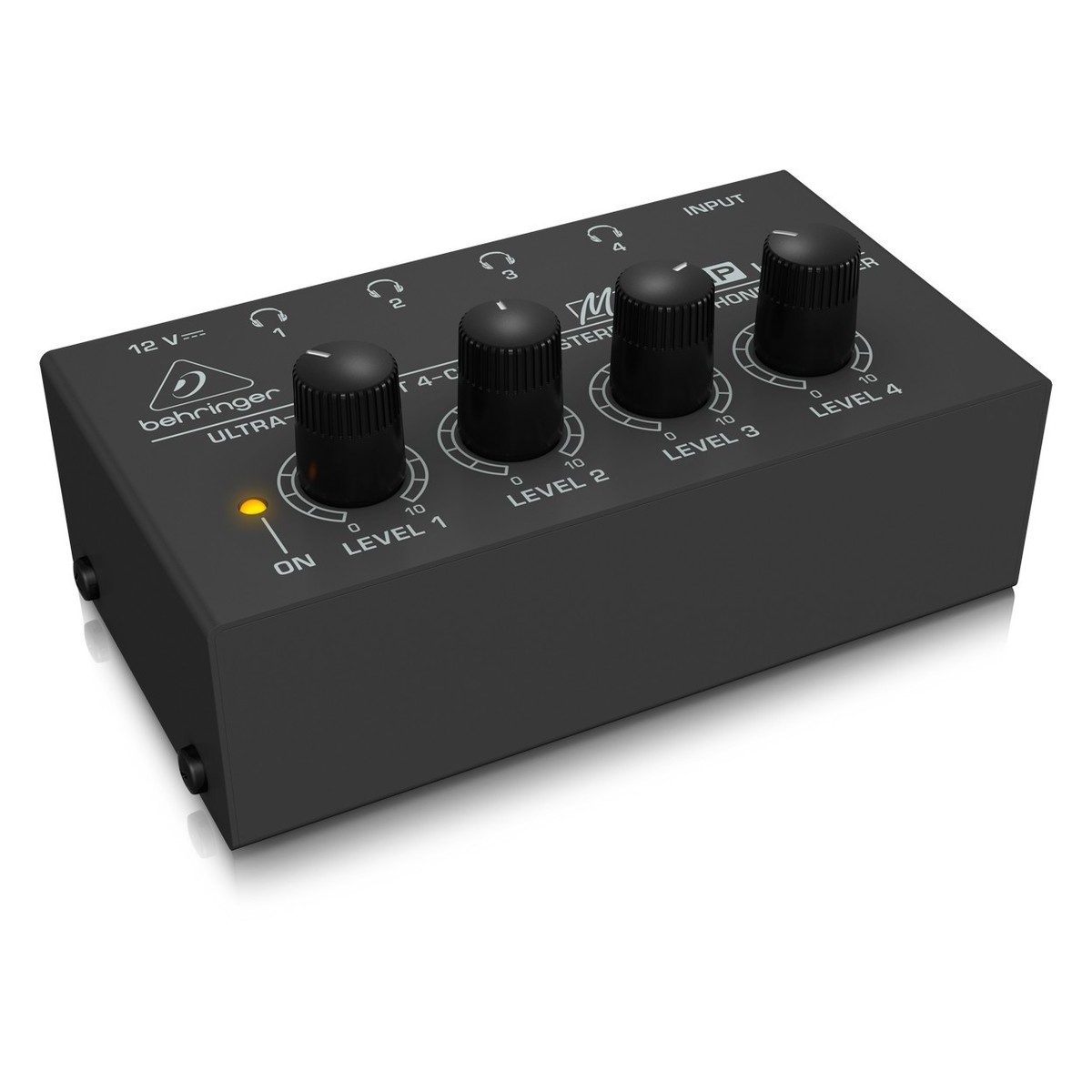 - DC 12V adapter included Full Description The Highest Quality Monitoring Possible Great monitoring is at the heart of a tight performance. Whether you're on stage or in the studio, the HA4000 delivers ultimate control for everyone playing. Discover the highest quality audio from 4 high power, stereo amplifiers. Even at maximum volume, this tidy headphone amp provides clear sound without muddiness or unwanted noise. Industry Leading Standard There's a reason why Behringer are leaders in their field. With 50+ years of industry experience, they've built a legacy around exceptional build quality and innovative design. The HA4000 is no exception. Every channel preserves the original sonic qualities of your input signal. That's performance you can trust. Features