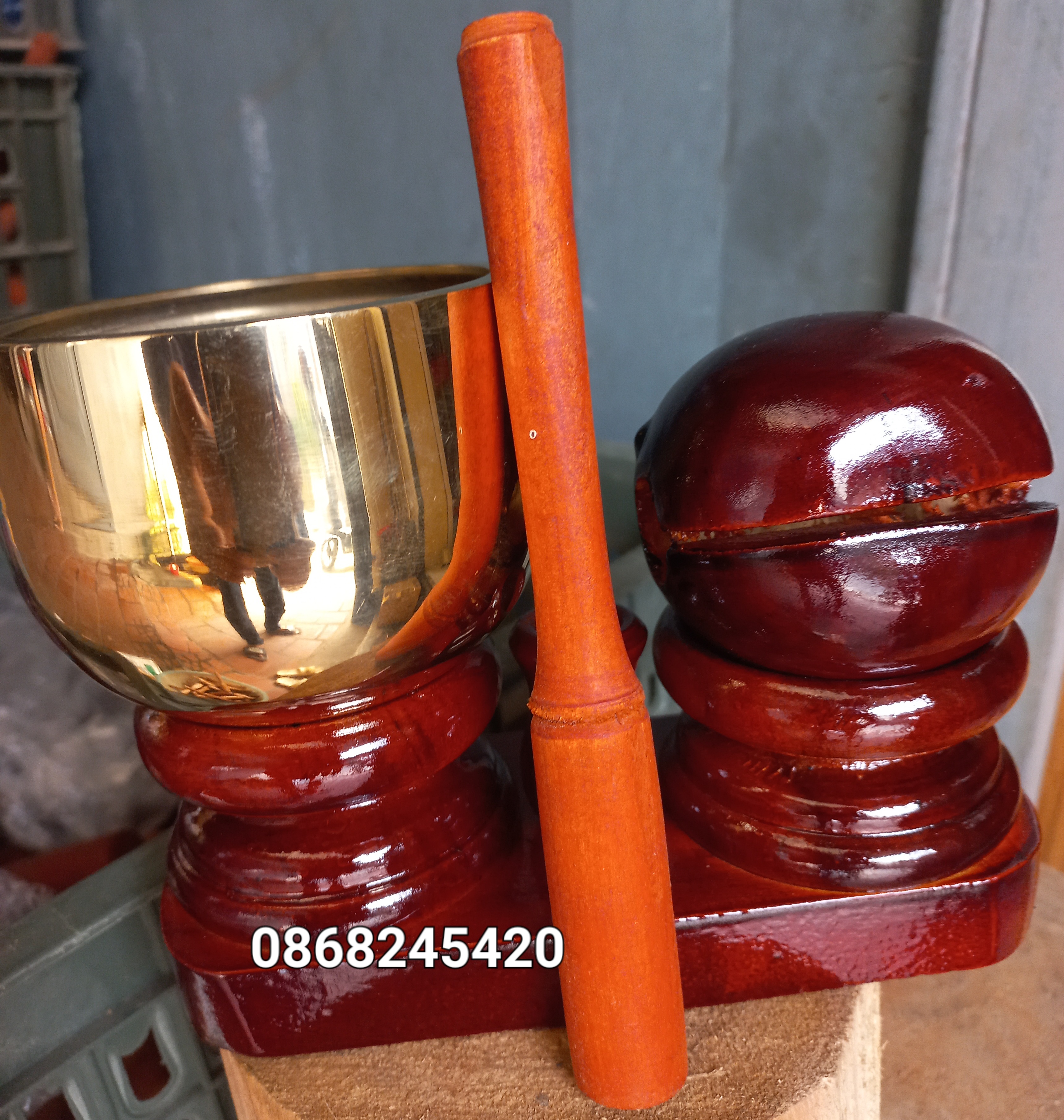✨Bộ chuông mõ tụng kinh bằng gỗ mít kt 6cm + cả chân đế