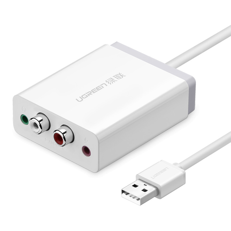 Card sound USB to RCA hỗ trợ Mic + tai nghe Ugreen 30521 chính hãng