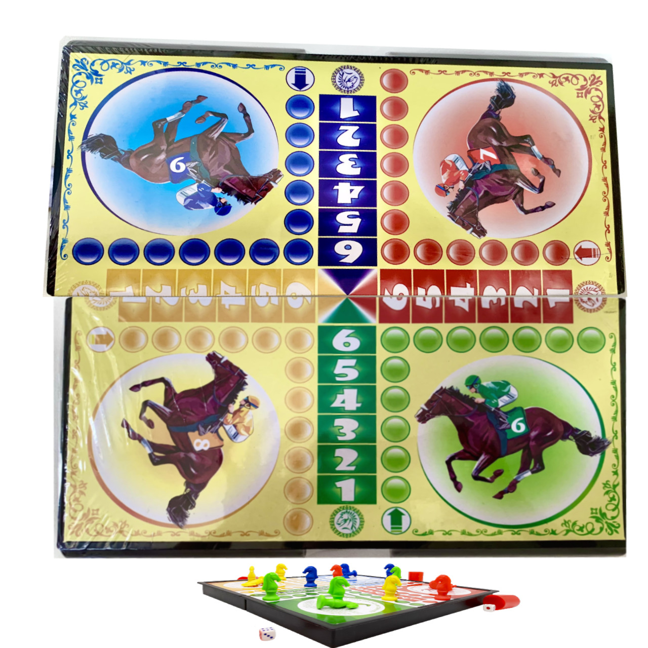 Bàn cờ lớn, quân cờ to, cầm chắc tay, an toàn khi sử dụng Bàn cờ được làm theo công nghệ hiện đại Bàn là hộp đựng tiện lợi, có thể gấp gọn và cho sản phẩm vào hộp khi không sử dụng nữa, tránh thất thoát, rơi mất, đồng thời quần cờ luôn được giữ mới sạch sẽ; sử dụng lâu bền. Có 16 quân cờ chia đều 4 màu, mỗi màu có 4 quân ứng với 1 người chơi Xúc xắc vuông vắn, khắc nét tinh xảo, màu sắc bền màu khó phai và không có mùi nhựa. Sản phẩm gọn nhẹ, dễ dàng mang theo khi đi du lịch, về quê, đi chơi công viên để tụ tập đông người tạo không khí vui vẻ, ấm cúng giải trí tuyệt vời  An Toàn Vui Nhộn Vỏ Hộp Màu Ngẫu Nhiên Cờ cá ngựa hay còn gọi là Cờ đua ngựa là một trò chơi giải trí. Trò chơi này bắt nguồn từ trò Pachisi của Ấn Độ, du nhập sang Mỹ, cuối cùng du nhập sang Việt Nam và được gọi là Cờ cá ngựa. Trò chơi này có thể từ hai đến bốn người chơi, diễn ra trên một bàn cờ hình vuông. Nguyên tắc chơi: Là di chuyển quân cờ của mình đủ một vòng (ngược chiều kim đồng hồ) quanh bàn cờ để về đến đích (tức về chuồng). Khả năng di chuyển nhanh hay chậm đều phụ thuộc vào lượt tung xúc xắc của mình. Người nào có đủ bốn quân cờ về đến đích đầu tiên và đã xếp đúng vào các ô số 6, 5, 4 và 3 trong chuồng là người chiến thắng. Những người còn lại có thể chơi tiếp để tranh vị trí hai và ba. Trò chơi Cờ cá ngựa hầu như tuổi thơ của bất kỳ ai cũng đều được trải qua; cảm giác như được ùa về những tháng ngày còn học sinh cùng lũ bạn tụm đầu vào chơi, rồi cười vui vẻ khi chuẩn bị đá được 1 chú ngựa của đối thủ. Bạn cũng muốn có được trải nghiệm những cảm giác như vậy, thì đây là 1 trò chơi rất nên.