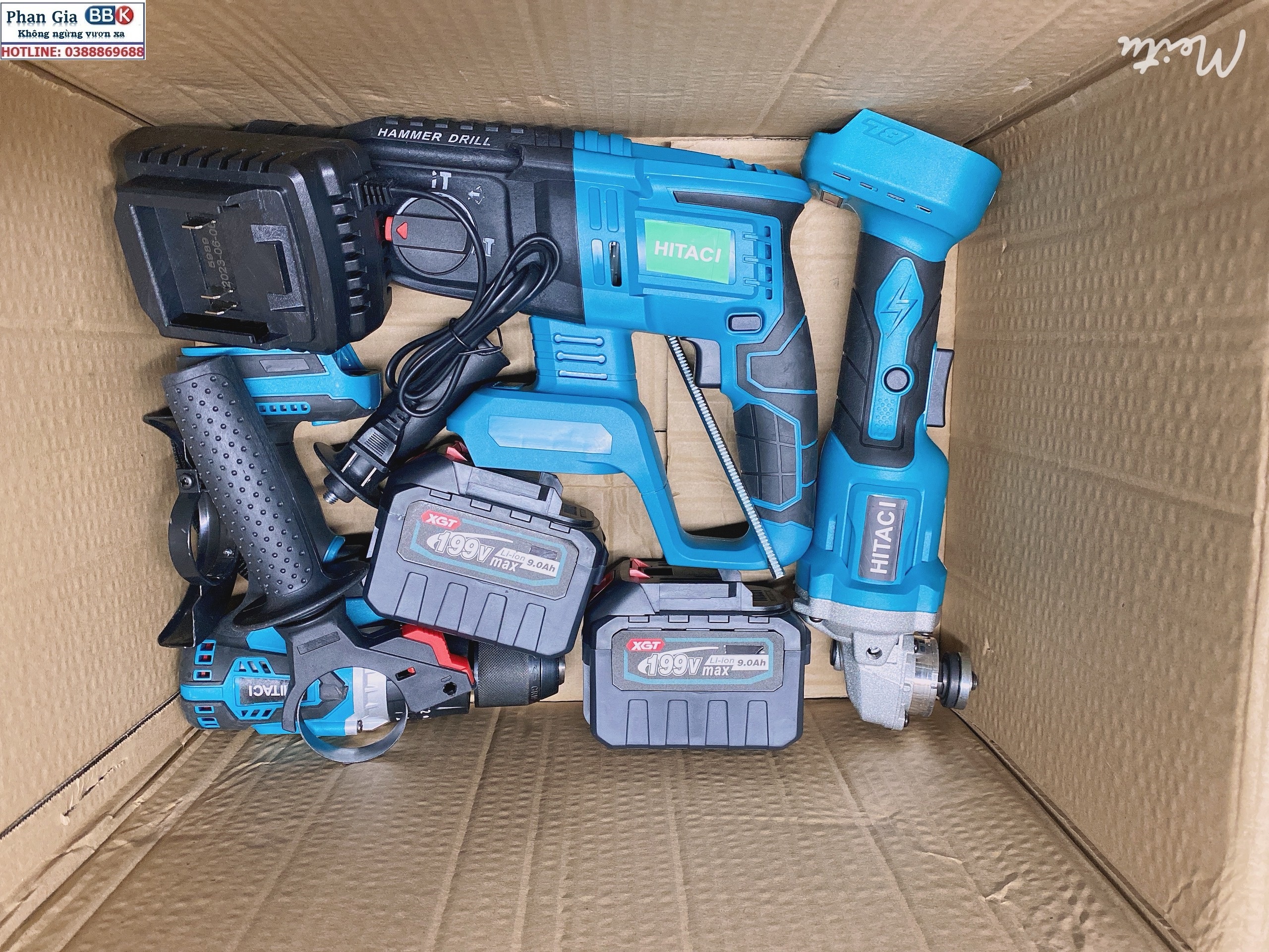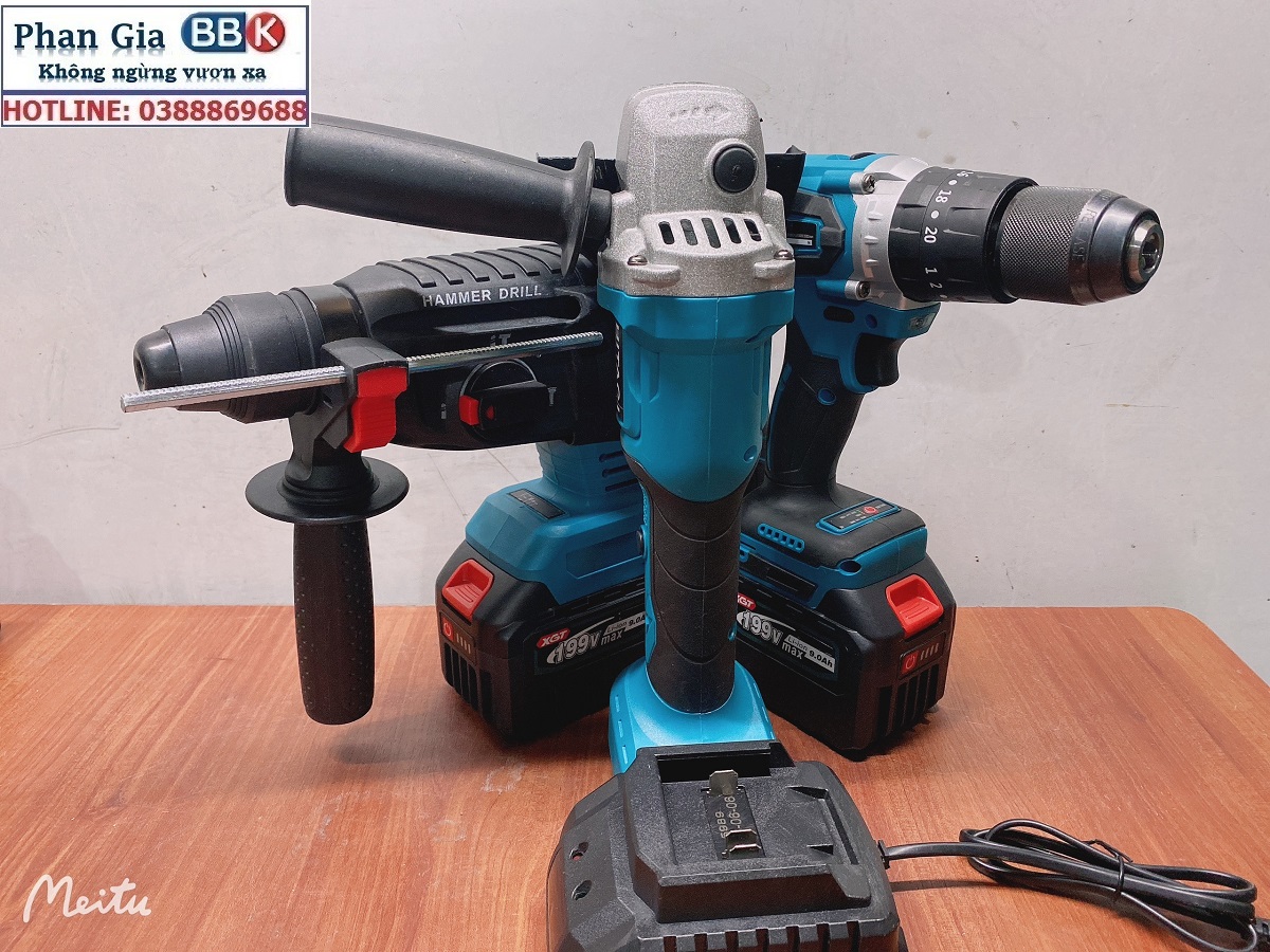 ✨Bộ Combo 3 Món Gồm Máy Khoan Đục Bê Tông, Máy Mài Và Máy Khoan Pin Dùng Pin 199V, 2 Pin 15Cell, Máy Khoan Siêu Khỏe - Bảo Hành 12 Tháng