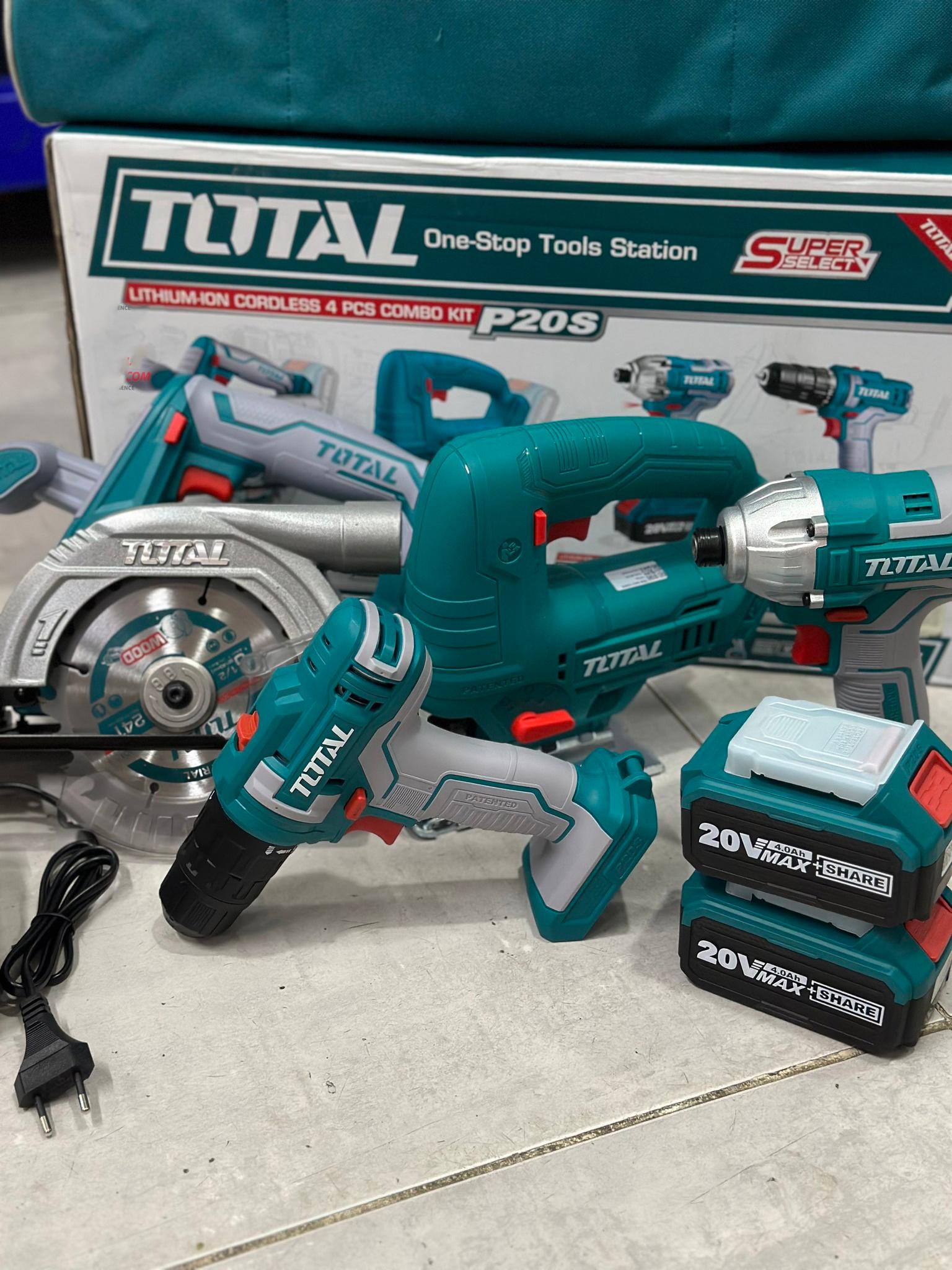 ✨BỘ COMBO 4 MÁY GỒM CƯA ĐĨA TRÒN , CƯA LỌNG , SIẾT VÍT VÀ KHOAN DÙNG PIN LITHIUM 20V (2 pin 4Ah và 1 sạc) TOTAL TCKLI20104 - HÀNG CHÍNH HÃNG