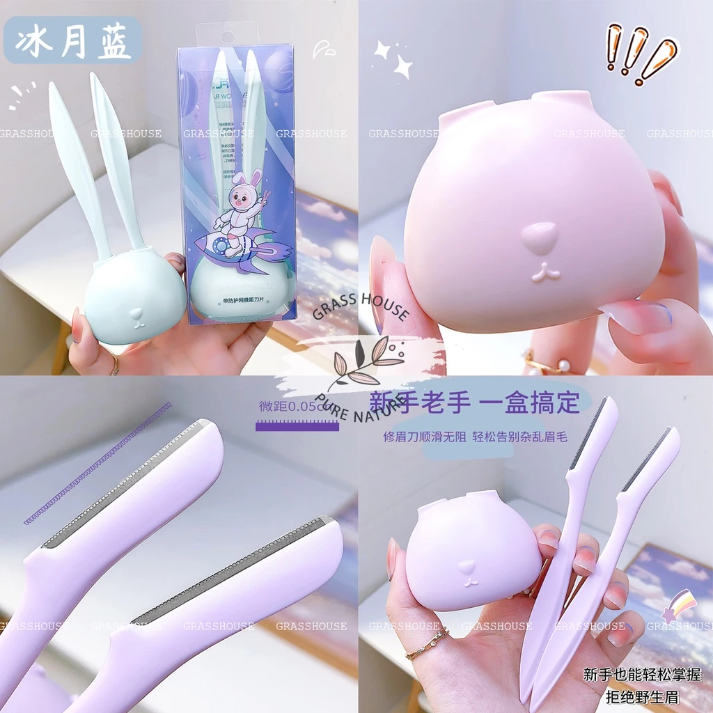✨Bộ Dao cạo Tỉa Lông Mày hình thỏ dễ thương 2 Bộ Lưỡi Dao Cạo Lông Mày Bền Chống Xước Mịn