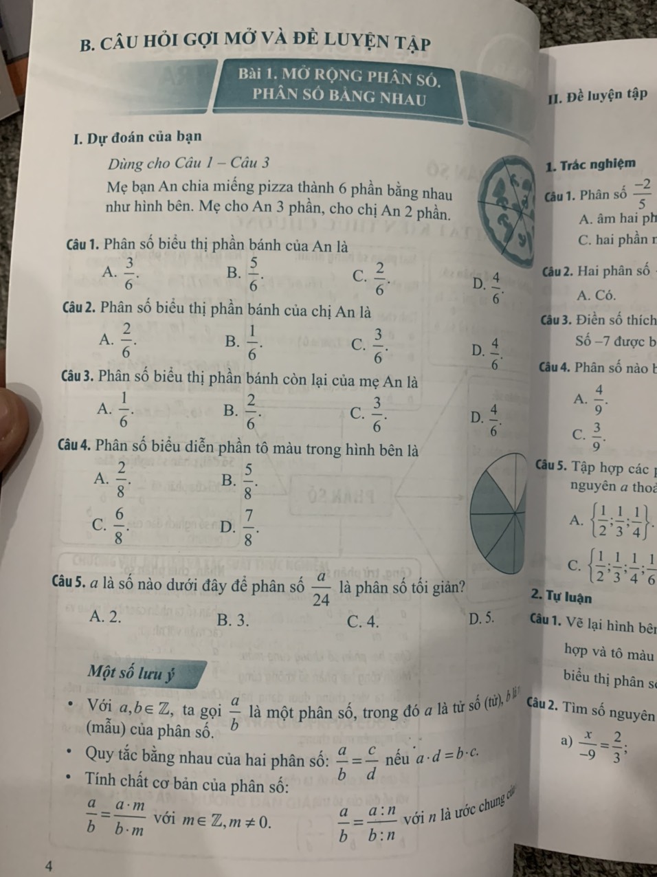 Cấu trúc cụ thể của cuốn sách Bộ đề kiểm tra, đánh giá Toán 6 như sau: PHẦN 1. ĐỀ KIỂM TRA, ĐÁNH GIÁ Đề kiểm tra giữa học kì l Đề