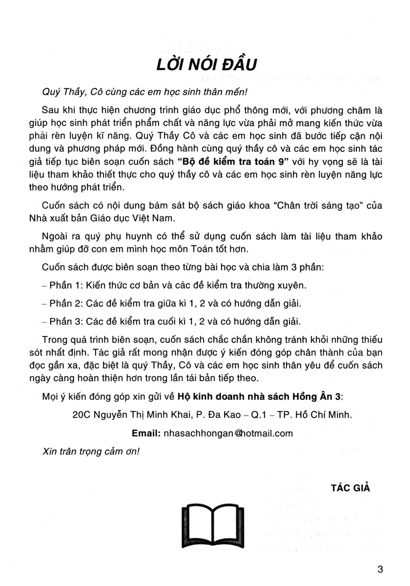 Sách - Bộ Đề Kiểm Tra Toán 9 (Bám Sát SGK Chân Trời Sáng Tạo) - HA Quý Thầy, Cô cùng các em học sinh thân mến! Sau khi thực hiện chương trình giáo