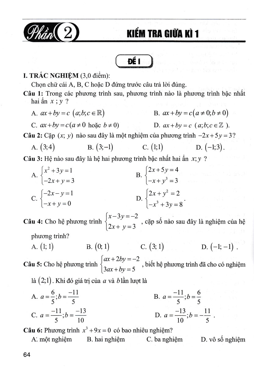 Bộ Đề Kiểm Tra Toán 9 (Bám Sát SGK Chân Trời Sáng Tạo) Sau một năm thực hiện Chương trình Giáo dục phổ thông mới, với phương châm là vừa giúp học sinh phát triển phẩm chất và năng lực vừa phải mở mang kiến thức vừa phải rèn luyện kĩ năng, quý Thầy Cô và các em học sinh đã từng bước tiếp cận nội dung và phương pháp mới. Đồng hành cùng quý thầy cô và các em học sinh, tác giả tiếp tục biên soạn cuốn sách “Bộ đề kiểm tra toán 9” với hy vọng sẽ là tài liệu tham khảo thiết thực cho quý thầy cô và các em học sinh rèn luyện năng lực theo hướng phát triển. Cuốn sách có nội dung bám sát bộ sách giáo khoa “Chân trời sáng tạo” của Nhà xuất bản Giáo dục Việt Nam. Ngoài ra quý phụ huynh có thể sử dụng cuốn sách làm tài liệu tham khảo nhằm giúp con em mình học môn Toán tốt hơn. Cuốn sách được biên soạn theo từng bài học và chia làm 3 phần. – Phần 1: Kiến thức cơ bản và các đề kiểm tra thường xuyên. − Phần 2: Các đề kiểm tra giữa kì 1, 2 và có hướng dẫn giải. − Phần 3: Các đề kiểm tra cuối kì 1, 2 và có hướng dẫn giải. Trong quá trình biên soạn, cuốn sách chắc chắn không tránh khỏi những thiếu sót nhất định. Tác giả rất mong nhận được ý kiến đóng góp chân thành của bạn đọc gần xa, đặc biệt là quý Thầy, Cô và các em học sinh thân yêu để cuốn sách ngày càng hoàn thiện hơn trong lần tái bản tiếp theo.