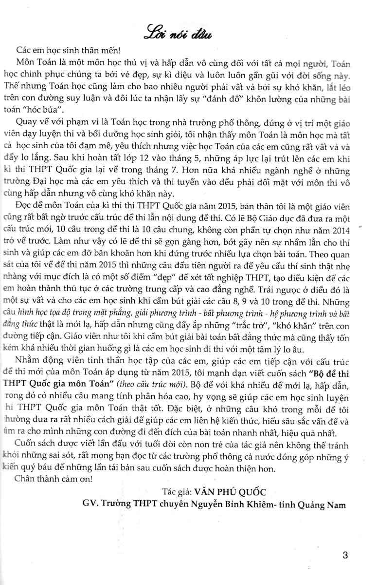 Bộ Đề Luyện Thi THPT Quốc Gia Môn Toán Tự Luận - Văn Phú Quốc Môn Toán là một môn học thú vị và hấp dẫn vô cùng đối với tất cả mọi người bởi vì Toán học chinh phục chúng ta bởi vẻ đẹp, sự kì diệu và ...