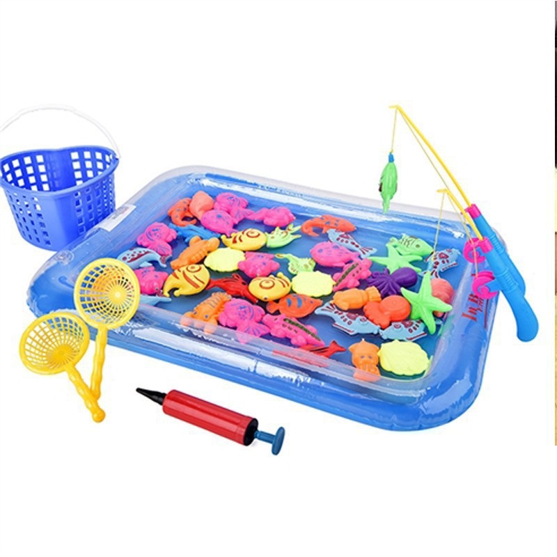 Bộ đồ chơi câu cá trẻ em kèm phao, rổ, vợt, cá, - Bể phao câu cá cho bé cao cấp loại 1, an toàn Bộ đồ chơi câu cá trẻ em gồm bể phao, các sinh vật biển, cần câ để bé có thể trải nghiệm trò chơi câu cá thú vị ngay tại nhà. Các chú cá được thiết kế nhiều màu sắc, hơn nữa đầu cần câu có gắn nam châm để bé dễ dàng câu được cá hơn, bố mẹ có thể cho nước vào để bé chơi thêm thú vị. Thông tin chi tiết: