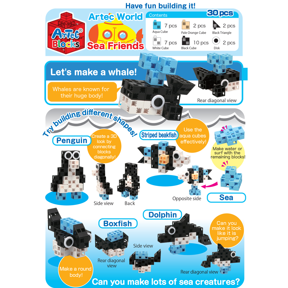 Bộ đồ chơi lắp ghép Artec Thế giới - Sinh vật biển Kích thước hoàn hảo cho bàn tay của bé, kết nối theo chiều dọc, chiều ngang và đường chéo để trẻ nhỏ tạo ra bất kỳ hình dạng nào chúng có thể tưởng...