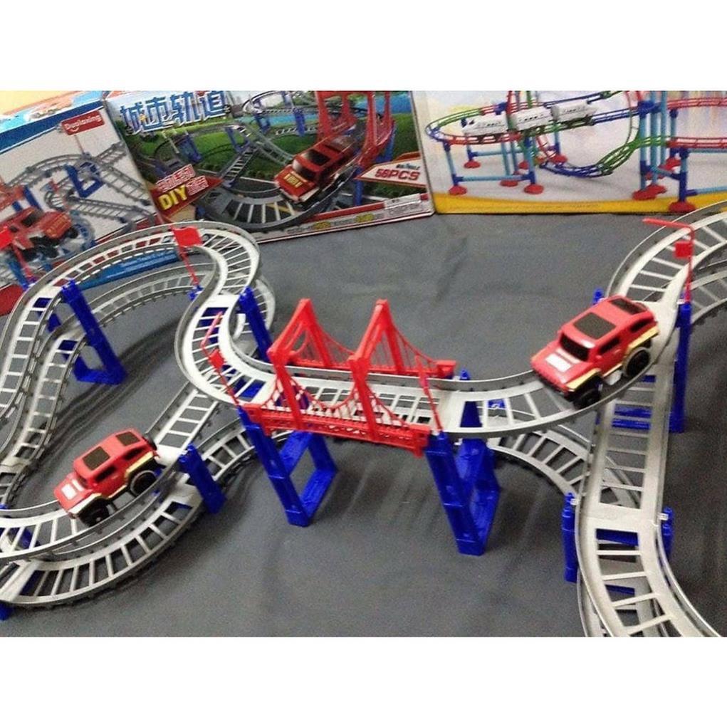 – Bộ lắp ráp đường đua ô tô 88 chi tiết, cho bé thử sức kiến tạo mô hình giao thông thu nhỏ theo mẫu hoặc theo ý thích.