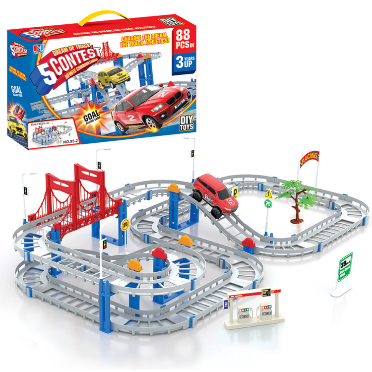 THÔNG TIN SẢN PHẨM: Bộ Lắp Ráp Đường Đua Ô Tô 88 Chi Tiết (Có tặng kèm 1 xe ô tô đồ chơi cỡ nhỏ) - Kích thước đóng hộp : 73x35x15 cm. - Chất