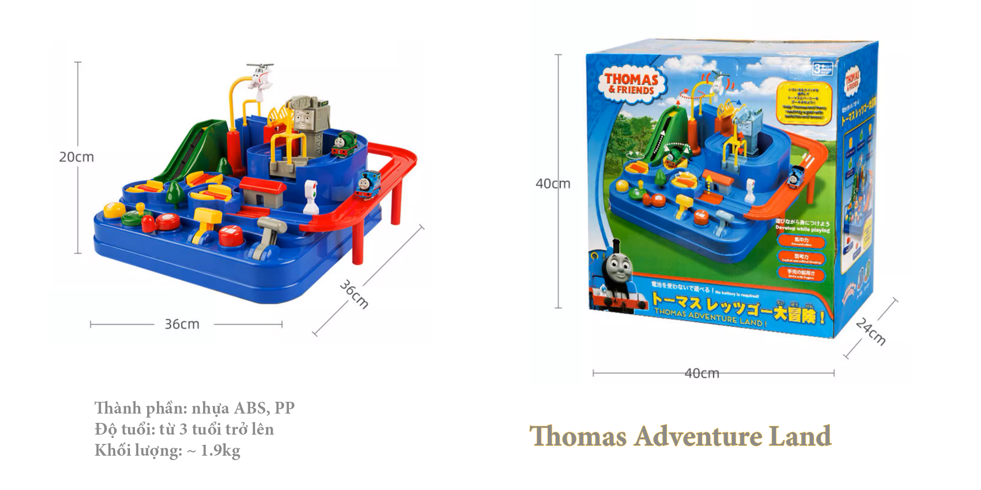 Bộ đồ chơi xe lửa Thomas - Vùng đất phiêu lưu Thương hiệu: Gakken Hongkong Xuất xứ thương hiệu: Nhật Bản Kích thước: 36*20*36 cm Chất liệu: Nhựa ABS, PP Độ tuổi: Từ 3 tuổi