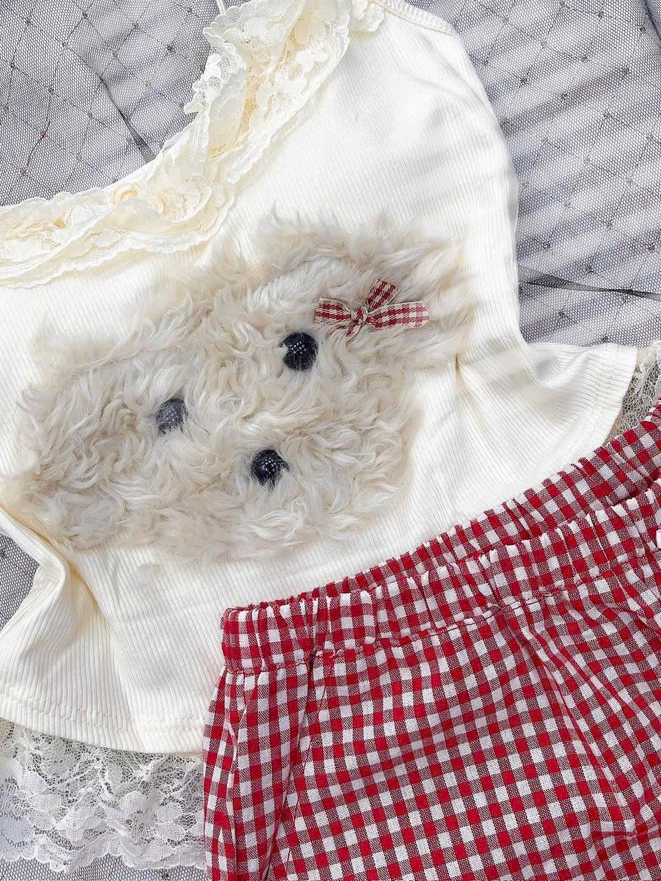 Đồ bộ mặc nhà lụa cao cấp WANNABE BSS39 đồ bộ quần sọt phối áo 2 dây lưng cut-out viền ren gợn sóng trẻ trung quyến rũ Đồ bộ mặc nhà phi lụa cao cấp