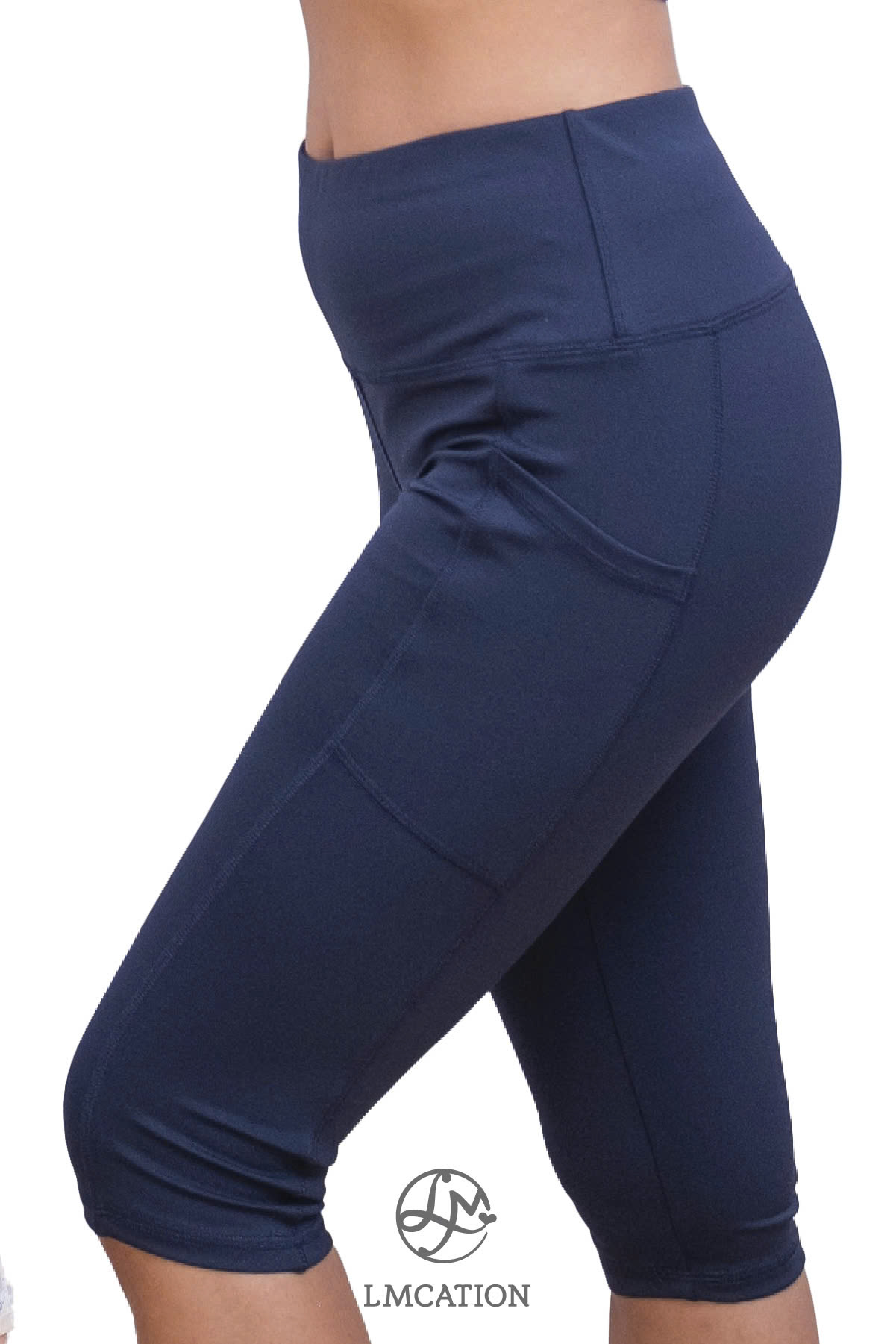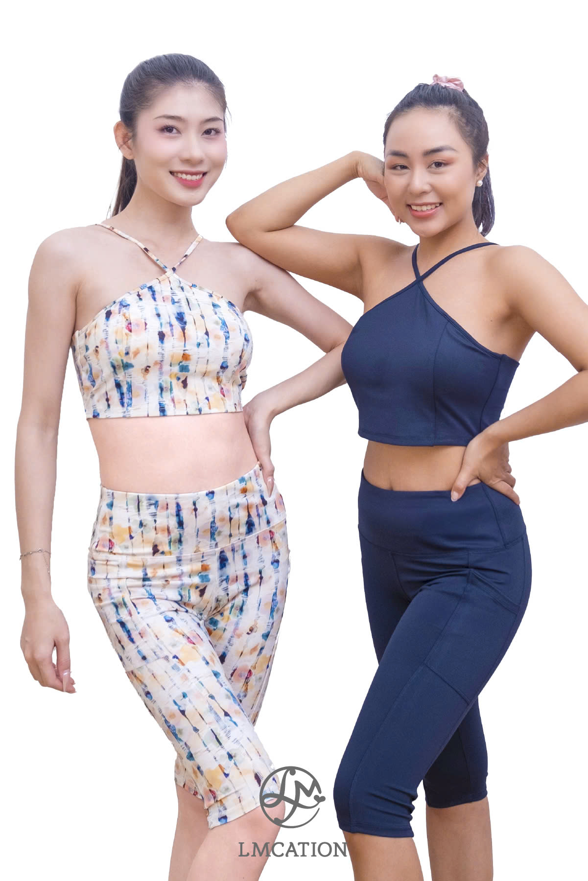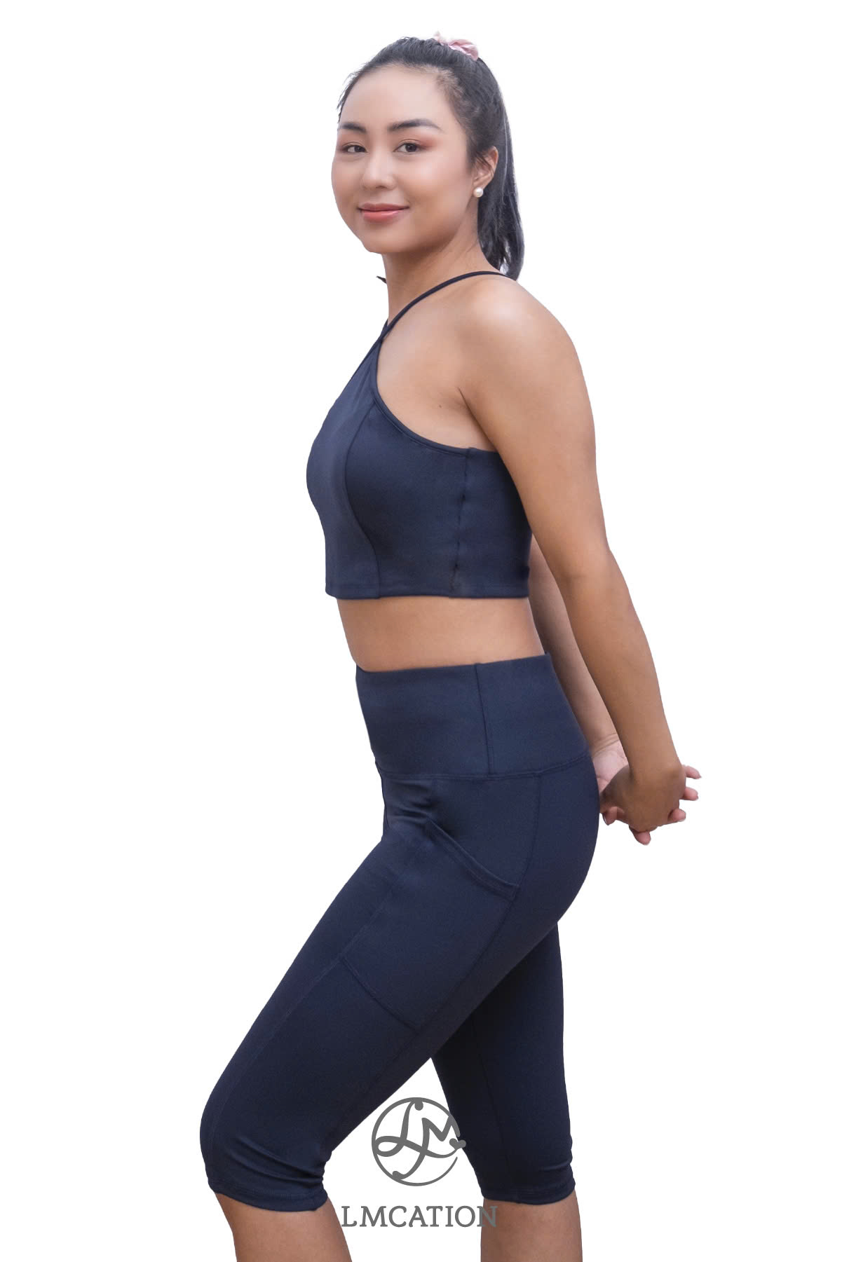 ✨Bộ đồ thể thao LMcation - Áo ngực thể thao cổ yếm Sophie & Quần lửng thể thao trên gối túi 2 bên - Xanh đen