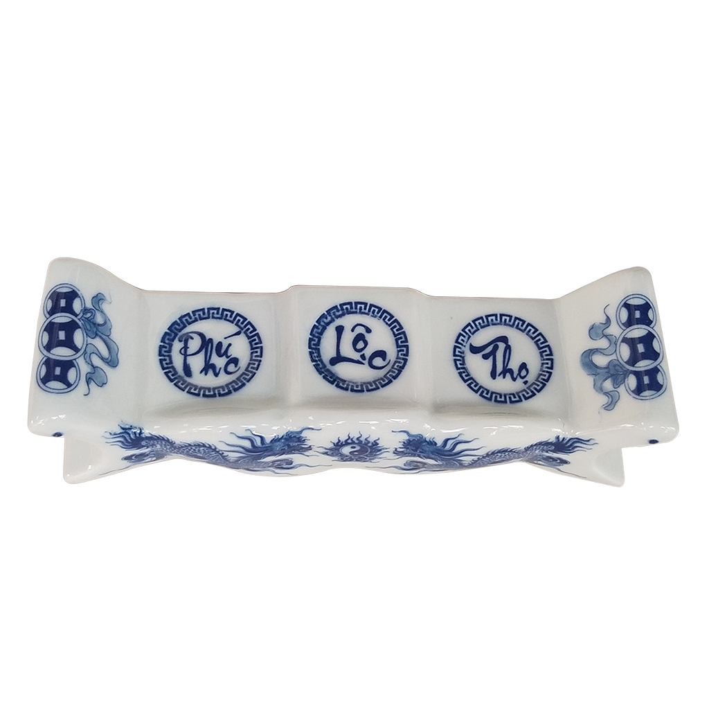 Bộ đồ thờ sứ men trắng ( TR16 ) phù hợp với ban tho treo tuong cỡ nhỏ 81×48cm, ban thờ thần tài Bộ sản phẩm bao gồm: 1 bát hương vẽ rồng Φ16 1