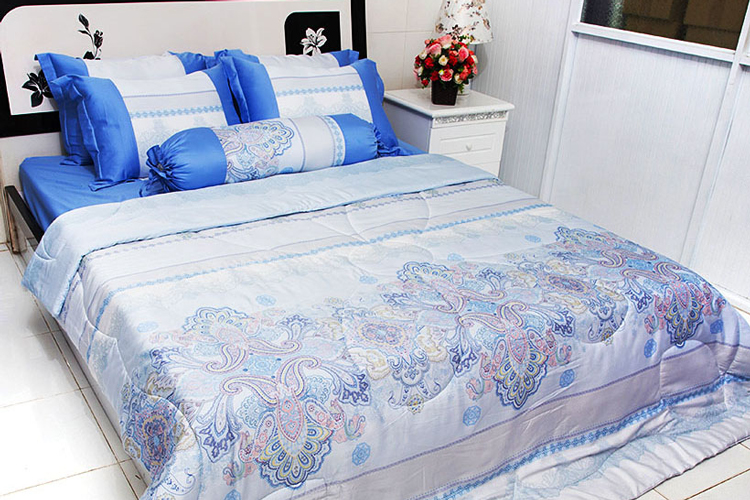 Bộ Drap & Chăn Chần Lụa Tencel Bee House F002 có màu xanh dương tươi mát gồm 5 món: 1 drap bọc 1.6 x 2 m/ 1.8 x 2m, 2 vỏ gối nằm 50 x 70 cm, 1 vỏ gối ôm 35 x 100 cm và 1 chăn chần 2 x 2.2 m. Bộ sản phẩm được thiết kế đồng bộ theo cùng một phong cách, góp phần tô điểm cho không gian sống thêm trang nhã, ấn tượng.