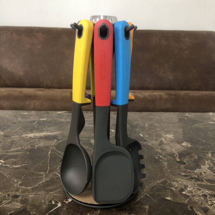 - Bộ dụng cụ nhà bếp 7 món Morphy Richards RM1032 sẽ giải quyết hoàn hảo những vấn đề này. Được làm từ chất liệu nylon silica gel + silicone chịu nhiệt cao, siêu nhẹ và bền, bảo vệ lớp chống dính , một người bạn đồng hành đắc lực cho đồ dùng nhà bếp.