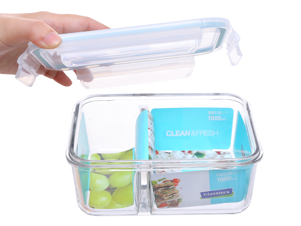 Hộp Thủy Tinh Chia Ngăn Lock&Lock Bằng Thủy Tinh Chịu Nhiệt, Dùng Được Trong Lò Vi Sóng