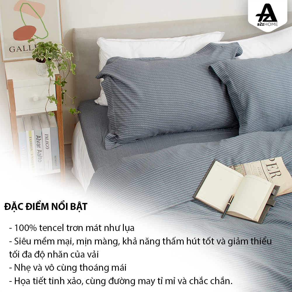 Bộ Ga Giường 4 Món Little Stripes Mềm Mại, 100% Tencel Cao Cấp A2Z Home Những dải sọc nhuyễn mang gam màu xám đen mạnh mẽ, vô cùng cá tính và trẻ trung. Hãy cùng A2Z Home đón mùa của nắng, dịu dàng mà gay gắt, rực rỡ như đang căng hết sức lực để làm bừng sáng không gian phòng ngủ qua bộ sưu tập Summer. CHẤT LIỆU SẢN PHẨM