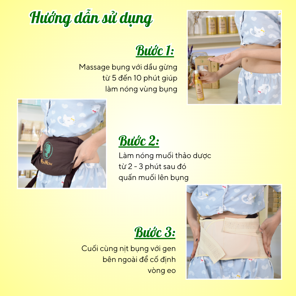 ️ Bước 4: Đeo gen nịt bụng ngoài túi muối để cố định túi muối giúp mẹ có thể chăm sóc bé và sinh hoạt bình thường trong nhà.
