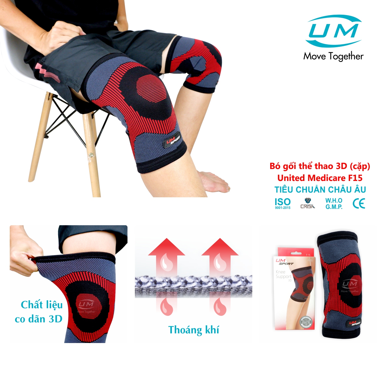 ✨Bó gối thể thao 3D Red United Medicare (F-15) (cặp)