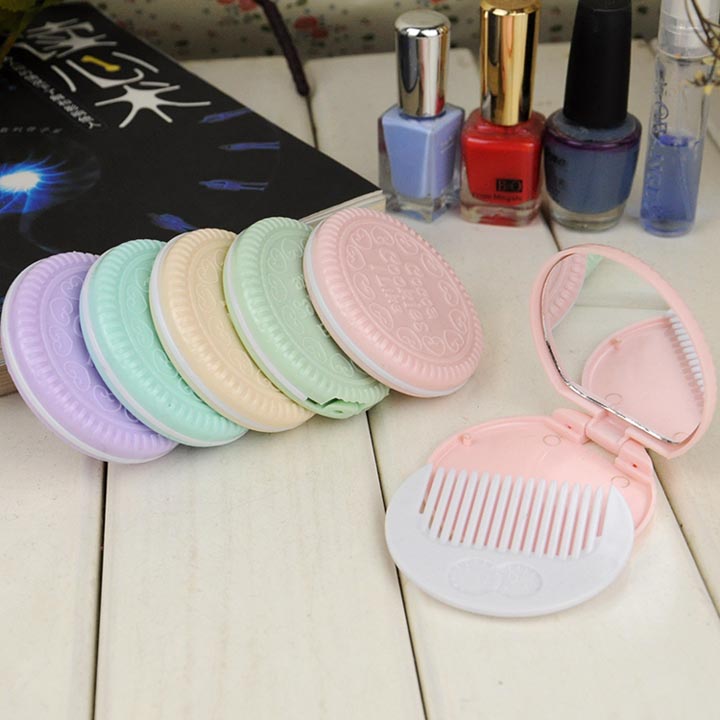 Sản phẩm thiết kế cực kỳ sáng tạo nhìn bề ngoài không khác gì một chiếc bánh cookie, nhưng mở ra thì sẽ khiến mọi người bất ngờ vì nó chỉ là bộ gương lược mini trong túi xách của chị em phụ nữ, rất thú vị đúng không?