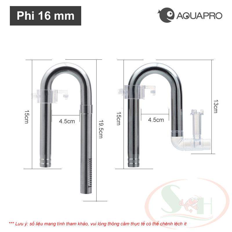 - Bộ in out inox Aquapro Mini Skimmer 12, 16 mm đã bao gồm sẵn 2 kẹp mica và 4 hít kẹp thường (dùng để thay thế khi kẹp mica bị gãy vỡ hoặc độ dày kính kẹp không phù hợp).