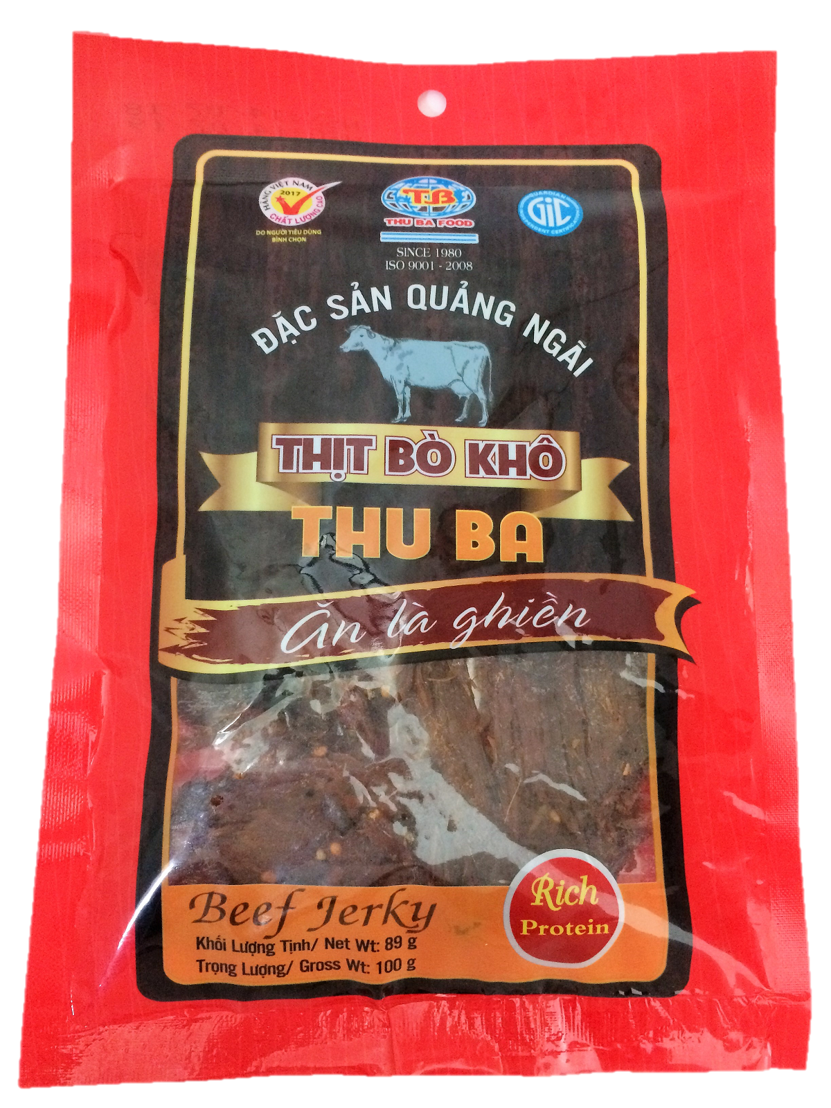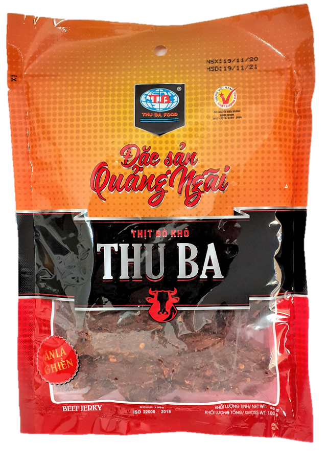 BÒ KHÔ THU BA là món đặc sản Quảng Ngãi, đạt tiêu chuẩn ISO 22000:2018 và là Hàng Việt Nam Chất Lượng Cao do Người tiêu dùng bình chọn Sản phẩm được sản xuất theo công thức