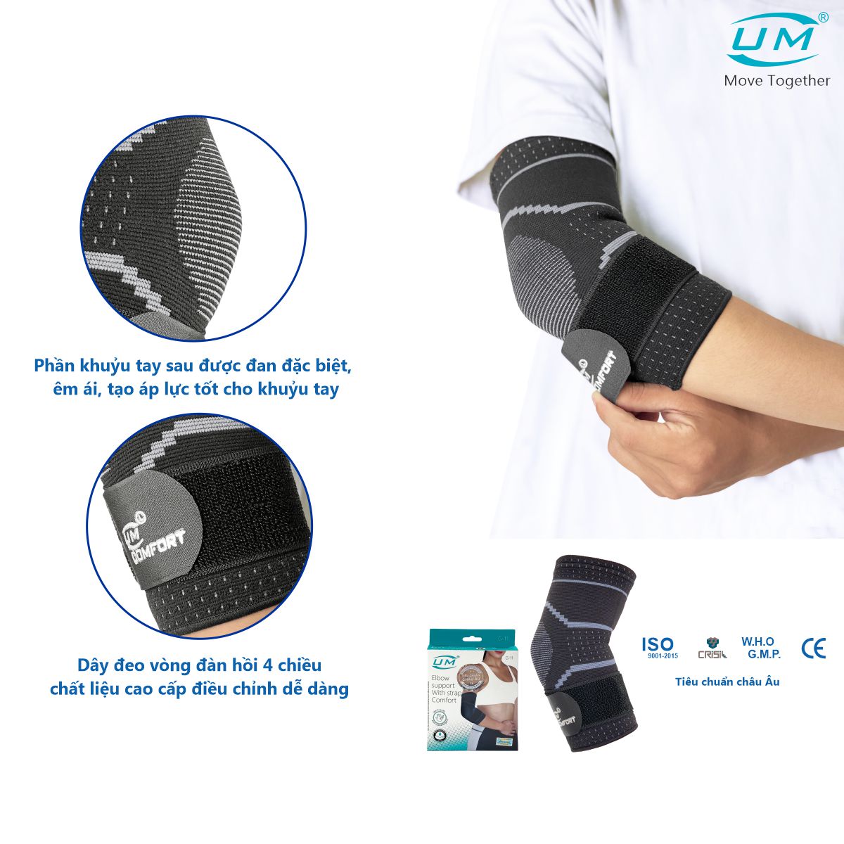 Bó khuỷu tay có đai dán UM (G11) là sản phẩm có tác dụng bảo vệ khớp khuỷu tay, cải thiện lưu lượng máu đến các khu vực mô mềm xung quanh khớp bằng cách tạo ra áp lực và xoa bóp liên tục trong quá trình di chuyển của bệnh nhân. CHỈ ĐỊNH