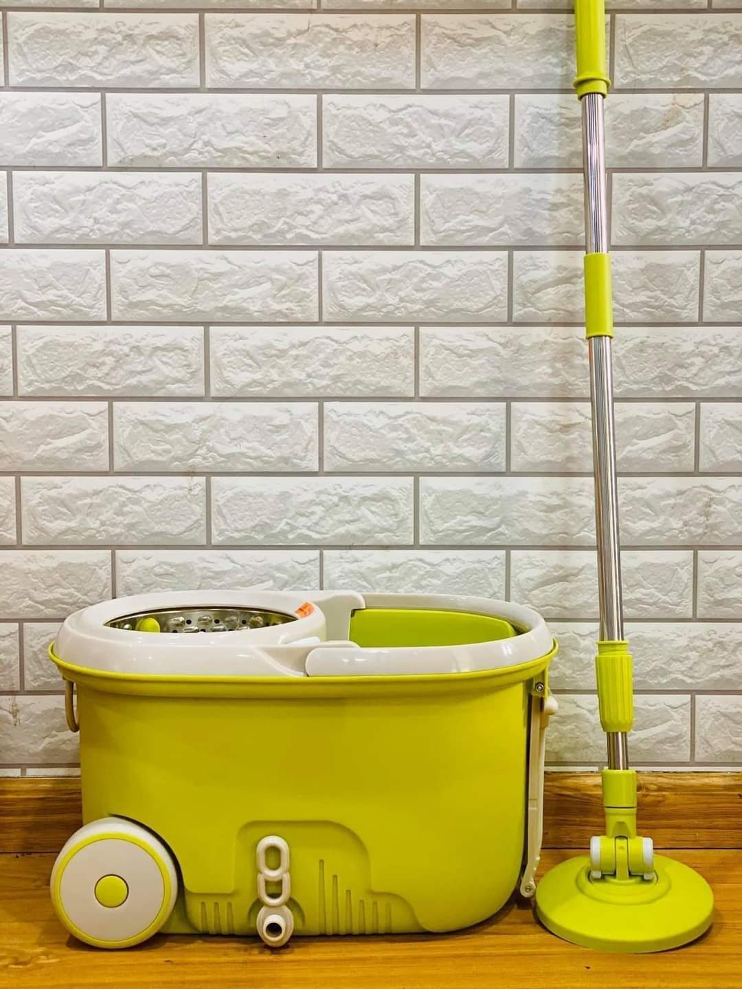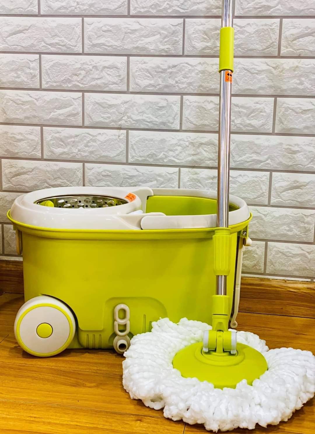 Bộ cây lau nhà xoay tay 360 độ MOP- L003Màu sắc: Xanh lá câyChất liệu : Nhựa, inox, sợi bôngKích thước: 49,5 x 31,5 x 30 (cm)-Lồng vắt bằng inox. Độ bền 2 năm, có bánh xe di chuyển.-Van xả nước b...