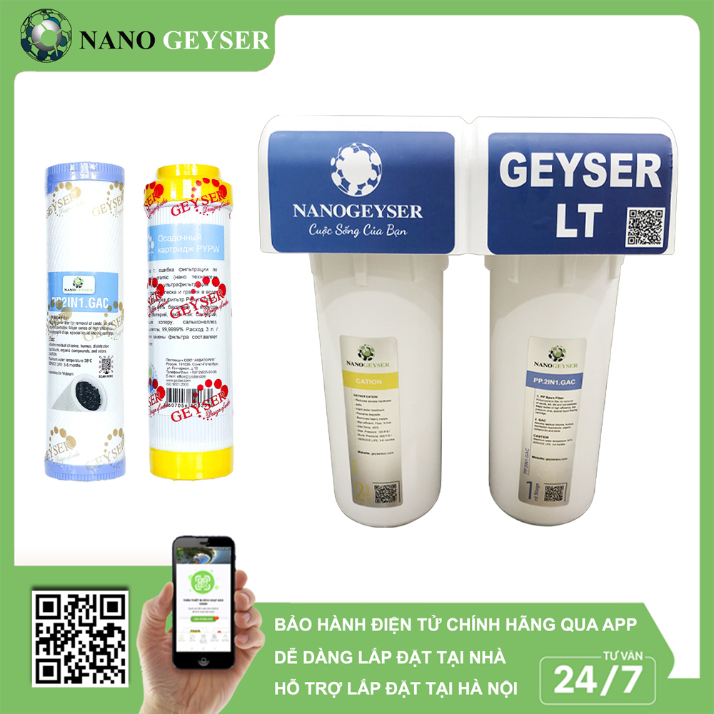 Lõi Nano Geyser + Lõi Cation Nano Geyser giúp xử lý nước có độ cứng bình thường