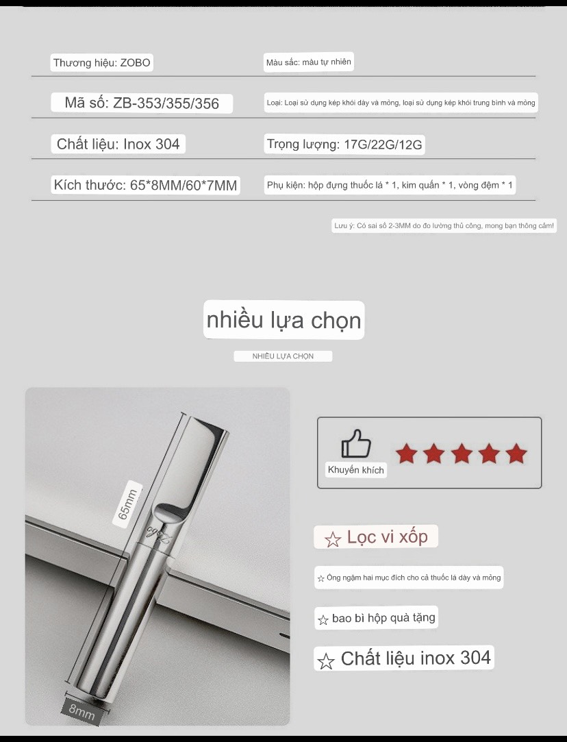✨Bộ lọc thuốc la cao cấp ZOBO- ZB355 full Box phong cách Châu Âu, Mỹ