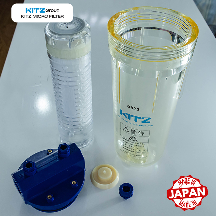 - Tuổi thọ lâu, có thể sục rửa màng trong thời gian sử dụng. THÔNG TIN SẢN PHẨM Mã sản phẩm AUH-TR-1 Loại sản phẩm Loại lọc tổng màng lọc sợi rỗng đầu nguồn 10 inch Mã bộ lọc PGW20-F1GS-1 Lưu lượng nước 30 lít/ phút Trọn bộ Bao gồm cốc lọc PUH và bộ lọc F1GS Áp suất làm việc tối thiểu 0.25 – 0.49 MPa Cấu tạo bộ lọc Màng lọc sợi rỗng Tiêu chuẩn thử nghiệm Nhật Bản JIS-S 3201/ ISO 9001-14001/ Hiệp hội nước Nhật Bản JWPAS B 100 Vật liệu màng lọc Polypropylene Vỏ ngoài bộ lọc Nhựa Polycarbonate Poting Polyurethane Loại kết nối (bộ lọc) O-ring (2-222) Tiêu chuẩn thử nghiệm Việt Nam QCVN 01-2009 Kích thước ngoài 12 x 34.5 cm Thương hiệu Kitz Micro Filter Xuất xứ Nhật Bản Bảo hành 12 tháng CHỨC NĂNG CỦA BỘ LỌC TỔNG KITZ MICRO FILTER AUH-TR-1 1 . Bộ lọc được sản xuất tại Nhật Bản bởi tập đoàn KITZ Corporation KITZ AUH-TR-1 là loại lọc tổng màng sợi rỗng dân dụng được sản xuất bởi KITZ Micro Filter thành viên tập đoàn KITZ CORPORATION Nhật Bản với hơn 35 năm phát triển là một trong những nhà sản xuất tiên phong trong lĩnh vực sản xuất van công nghiệp, các bộ lọc nước phục vụ nhu cầu sinh hoạt, dân dụng và thương mại nổi tiếng trên Thế Giới. Chất lượng sản phẩm của KITZ rất được ưa chuộng tại các thị trường từ Nhật Bản đến các nước Đông Nam Á, Mỹ, Châu Âu.