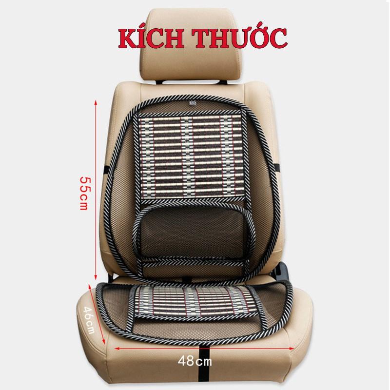 Sale mùa hè Bộ Lót Ghế Tựa Lưng Ô Tô Lưới Trúc Massage Lưng Chống Mỏi, Chống Nóng Hiệu Quả - 1 Chiếc THÔNG TIN SẢN PHẨM: CHẤT LIỆU: tre tự nhiên, hàng tuyển chọn. Mùi hương: hương thơm tự nhiên dịu nhẹ, dễ chịu. Kích thước: hình đính kèm. Kích thước phù hợp với hầu hết các loại ghế trên ô tô. Dễ dàng sử dụng Bộ sản phẩm gồm : Lót lưng và lót ghế TÁC DỤNG: Massage toàn bộ vùng vai gáy, lưng và mông giúp lưu thông mạch máu tạo cảm giác thoải mái, chống nhức mỏi khi đi đường dài bởi hệ thống hạt gỗ tự động xoay khi bạn thay đổi tư thế ngồi. Trúc đan với hệ thống lưới đàn hồi giúp bạn có tư thế ngoài thoải mái hơn, tạo cảm giác êm ái khi sử dụng. Hệ thống vật liệu tre thiên thoáng mát hơn sẽ giảm thiểu tình trạng mồ hôi không thoát hơi được. Hương thơm dịu nhẹ của tre tự nhiên đem lại sự tỉnh táo, giảm thiểu stress, giúp bạn xử lý tốt hơn khi lái xe. Ngoài bảo vệ bản thân bạn, đệm ghế hạt gỗ còn bảo vệ ghế da ô tô của bạn, giúp ghế da bền hơn, tránh hư hỏng Trang trí nội thất xe ô tô: sang trọng, đẳng cấp hơn. Sản phẩm này sẽ giúp bạn giảm thiểu tình trạng đau lưng, mỏi vai gáy và buồn ngủ với hệ thống tre đan, đẹm lưng giúp toàn bộ vùng. LƯU Ý: Giá sản phẩm là giá 1 chiếc.