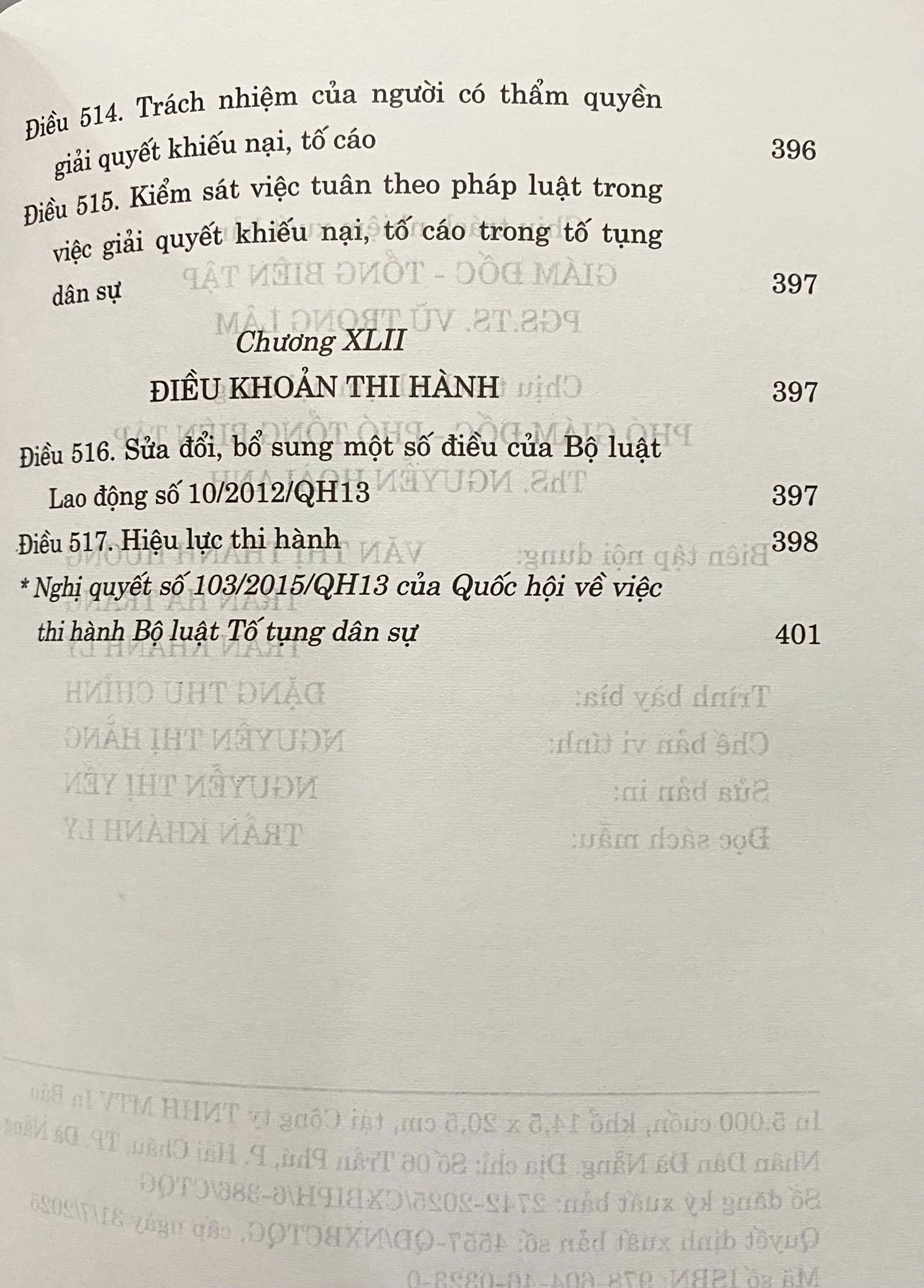 Cuốn sách là văn bản nhất thể hóa của Bộ luật Tố tụng Dân sự năm 2015 với nội dung sửa đổi, bổ sung Bộ luật Tố tụng Dân sự năm 2015 của Bộ luật