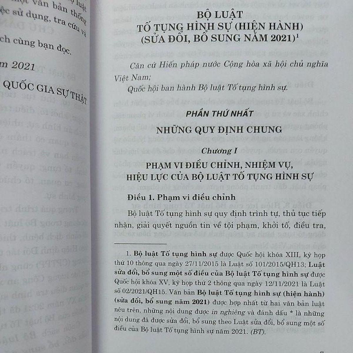 Phiên bản Bộ luật tố tụng hình sự năm 2015 (đính kèm 4 trang nội dung chỉnh sửa năm 2021), nên bạn đọc cân nhắc khi mua tham khảo     Bộ luật tố tụng