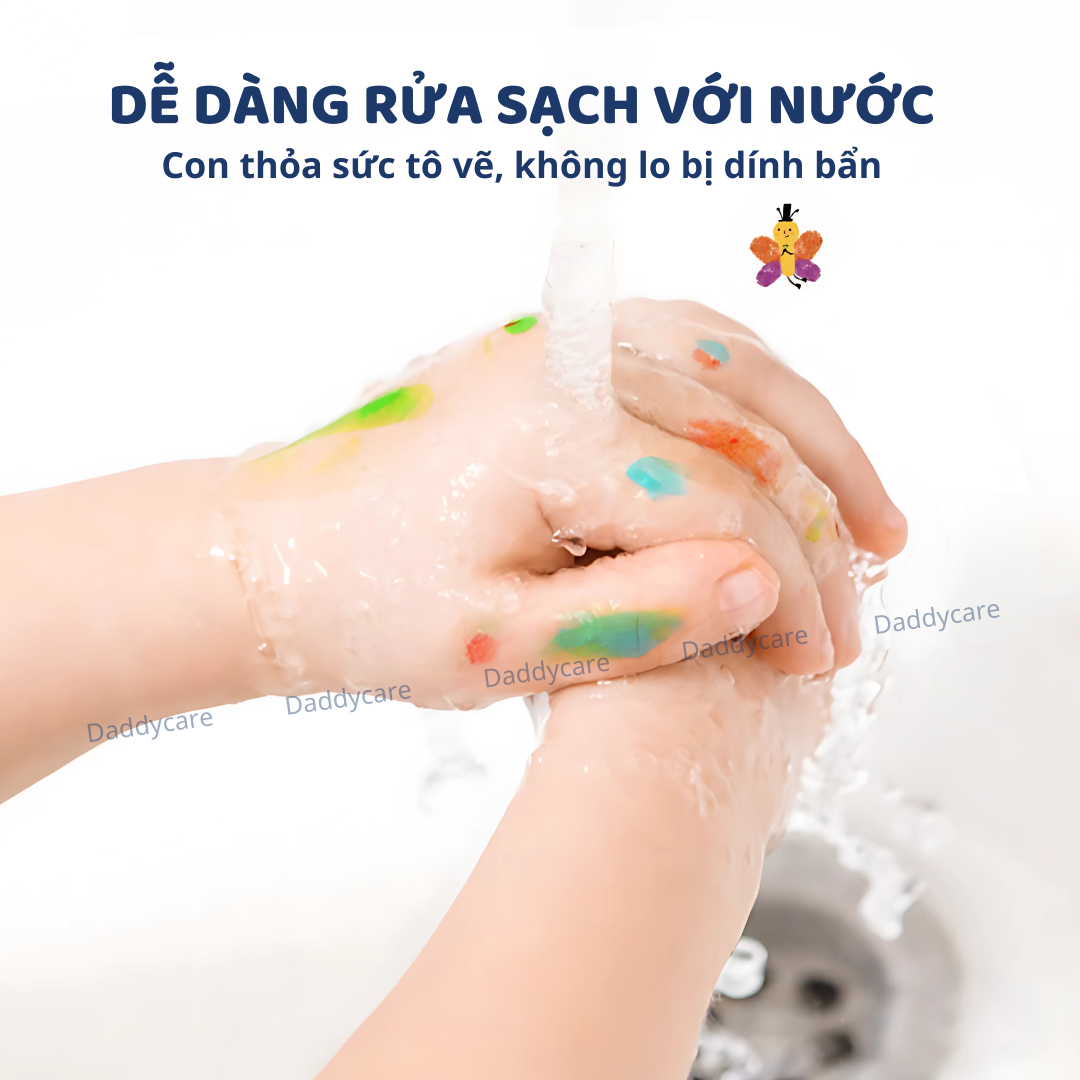 - MÀU VẼ MỊN MÀNG NHƯ SỮA, THÂN THIỆN VỚI DA VÀ DỄ DÀNG RỬA SẠCH: Kết cấu mịn màng giúp bé dễ dàng sử dụng.