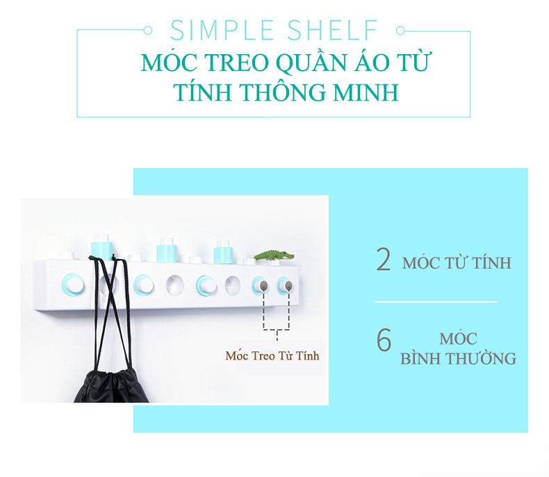 Bộ Móc Treo Quần Áo Nam Châm Thông Minh DIYThông Tin Sản Phẩm:            Kích Thước: 336 x 52 x 60mm            Trọng Lượng: 370g            Quy Cách: 8 móc/mặt            Sản Phẩm Bao Gồm: Xá...