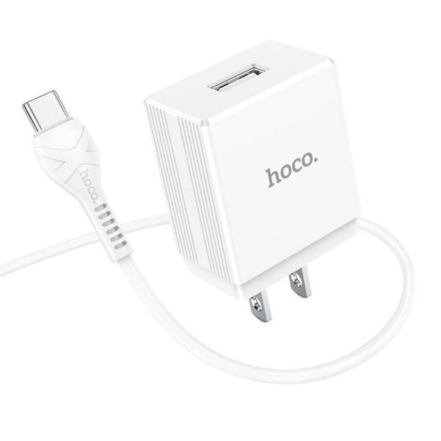 Bộ sạc 2.4A Hoco DC13 chuôi dẹt 1 cổng Usb kèm dây sạc Type-C dài 1M cho Android Hoco DC13 có chân cắm US dòng sạc 2.4A và 1 cổng USB đạt tiêu