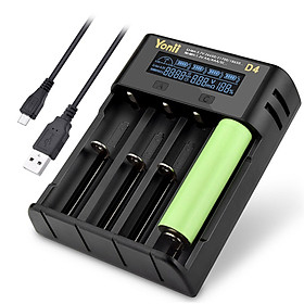 Features: 4-slots independent charging and independent management system, Type-C 5V/2A input. Multiple safety protection functions of over-charging, over-discharge, short-circuited and can automatically Identify broken/defective battery(will not charge bad batteries). Charging under constant voltage and current.