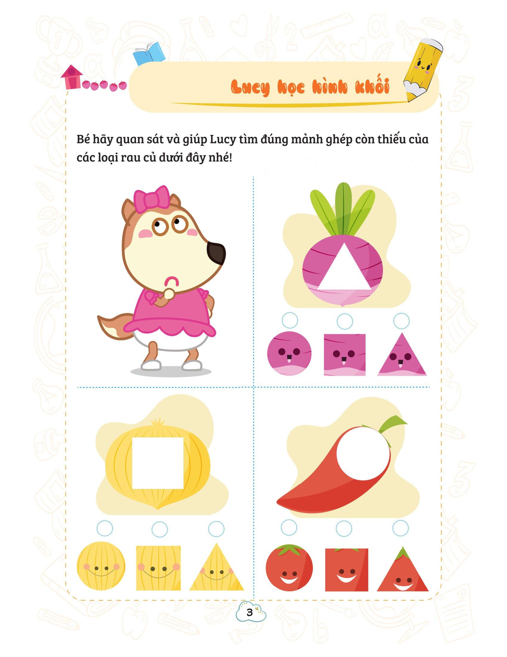 Các đơn vị bài học đều được chia thành các chủ điểm kết hợp với các hoạt động thú vị như tập đếm, trả lời câu hỏi, ghép tranh, tô màu theo phương pháp từ đơn giản tới phức tạp để giúp trẻ phát triển toàn diện khả năng tư duy logic, suy luận, đánh giá tổng quát và chi tiết từng vấn đề. Hơn nữa, bộ sách được thiết kế rất sinh động, dễ hiểu với phần thực hành đa dạng nhiều chủ đề giúp kích trí tưởng tượng, sáng tạo của trẻ.