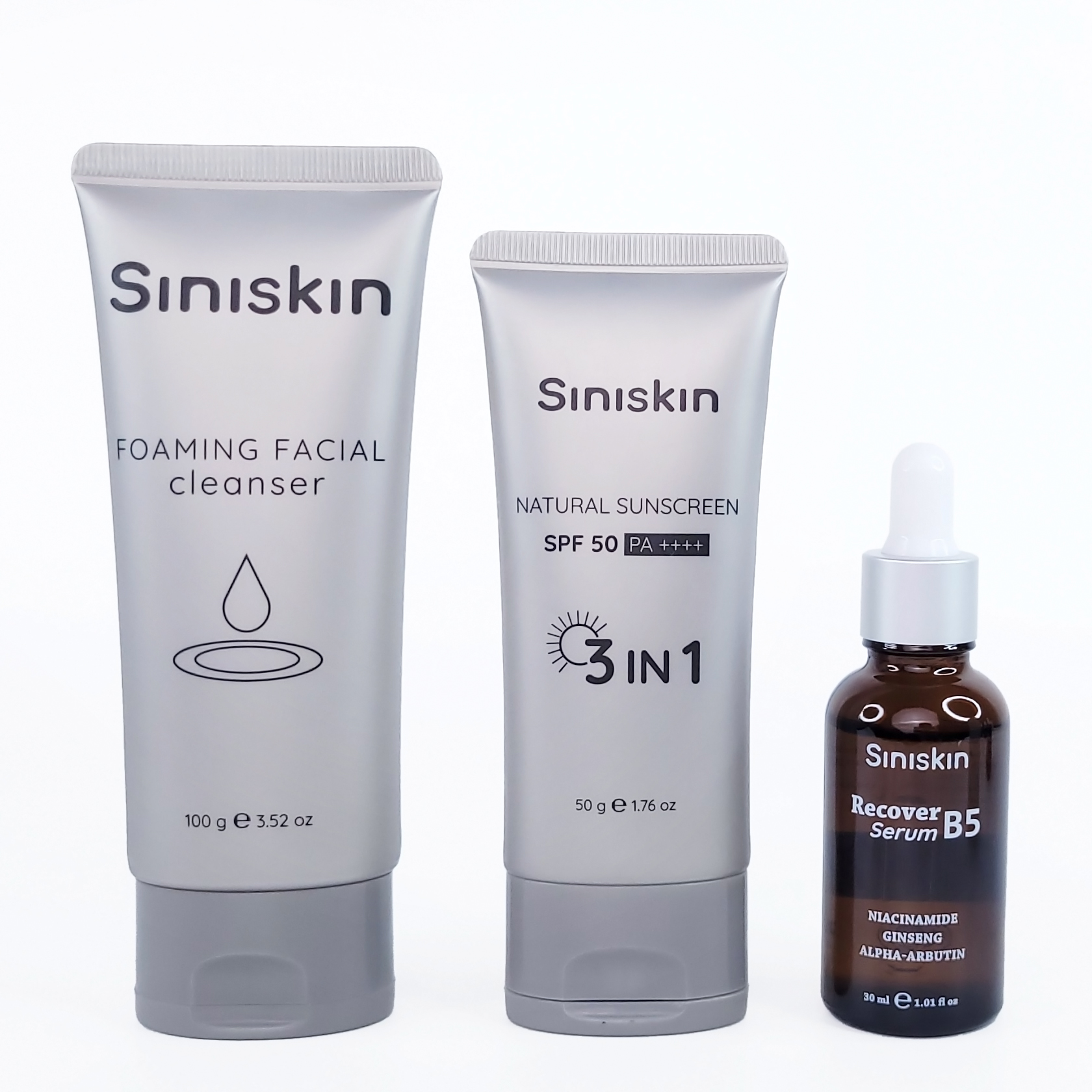 Giới thiệu bộ sản phẩm chăm sóc da mặt Siniskin: Bộ sản phẩm chăm sóc da mặt Siniskin là giải pháp toàn diện với 3 bước đơn giản nhưng hiệu quả, giúp bạn có được làn da khỏe mạnh và tươi trẻ. Bộ sản phẩm bao gồm Serum phục hồi da Recover B5, Kem chống nắng nâng tone tự nhiên, và Sữa rửa mặt tạo bọt dịu nhẹ. Các sản phẩm này không chỉ bổ sung và hỗ trợ lẫn nhau mà còn phù hợp với mọi loại da, mang lại hiệu quả chăm sóc tối ưu.