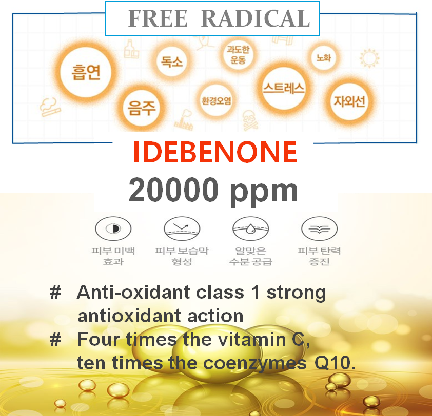 Hàm lượng dồi dào 20000ppm! IDEBENONE Multi Mist nhanh chóng cung cấp độ ẩm cho da và giữ ẩm, tạo lớp màng ẩm mỏng nhẹ giúp làn da trong trẻo như thủy tinh.