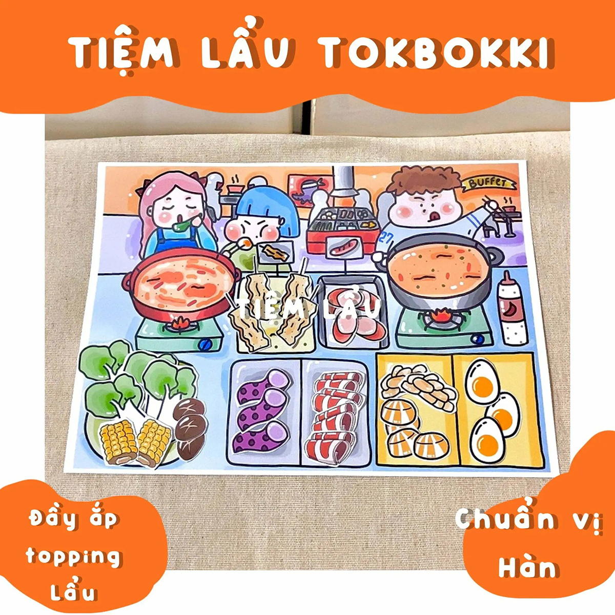 - Bộ tranh tiệm lẩu bằng Giấy có kích cỡ A4, Giấy dày 160-180gsm, có màu.