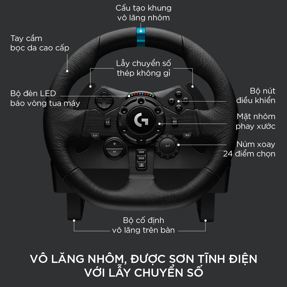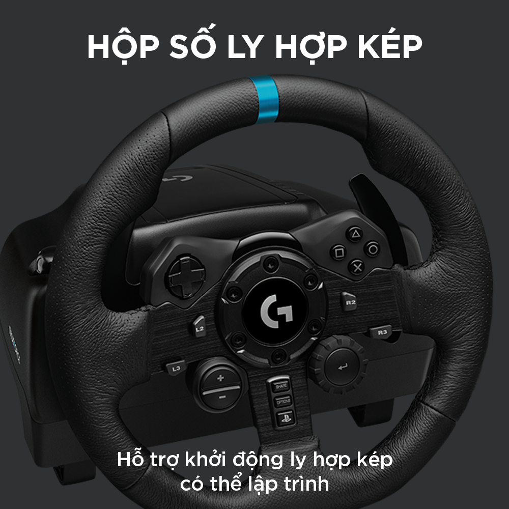 Mua tại TiktokMÔ TẢ SẢN PHẨM Logitech G923 là vô lăng đua xe hiệu suất cao, cách mạng hóa trải nghiệm đua xe siêu thực. Được thiết kế lại để hỗ trợ hệ thống phản hồi lực, Logitech G923 có tính năng TRUEFORCE mới nhất, mang đến tính chân thực chưa từng có bằng cách cung cấp cho người lái nhiều thông tin hơn về cấu tạo xe, đường đua và các tác động vật lý khác: độ bám của lốp, hệ thống treo, trọng lượng, mã lực, thậm chí cả âm thanh cộng hưởng của động cơ đều được cảm nhận ngay lập tức và chính xác qua vô lăng. Cảm nhận các pít-tông đang bơm, tiếng sỏi lạo xạo và mỗi lần chuyển số, trôi và quay vòng như chưa từng có trước đây. CÁC ĐẶC ĐIỂM NỔI BẬT Công nghệ phản hồi lực TRUEFORCE