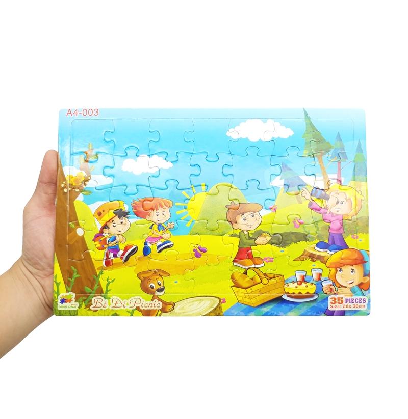 ✨Bộ Xếp Hình Khổ A4 Puzzle Minh Châu 35-03 - Bé Đi Picnic (35 Mảnh Ghép)