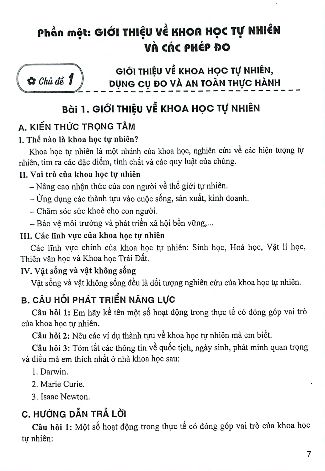 C. HƯỚNG DẪN TRẢ LỜI: Là phần giúp bạn đọc tự kiểm tra và đánh giá.